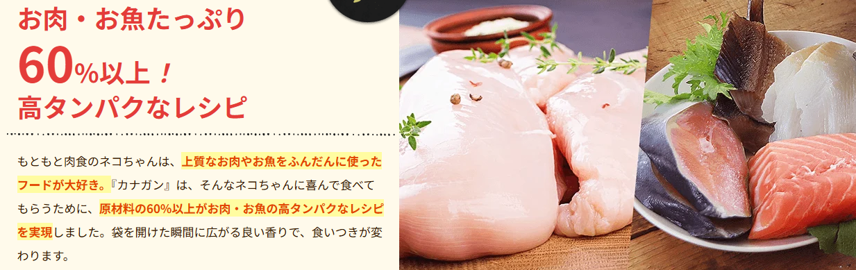 カナガンキャットフード チキン・サーモンは、肉や魚を中心に構成されている点が特徴で、シンプルに原材料を見たい方にとって判断しやすいのがメリットです。